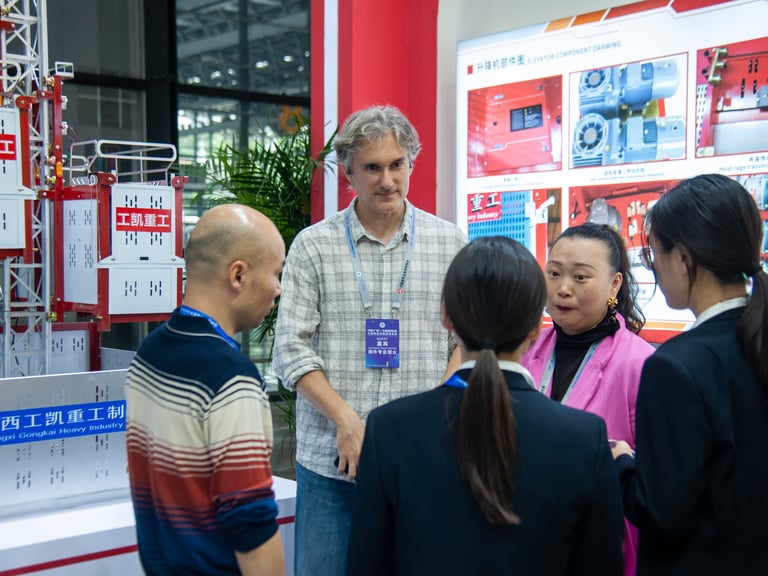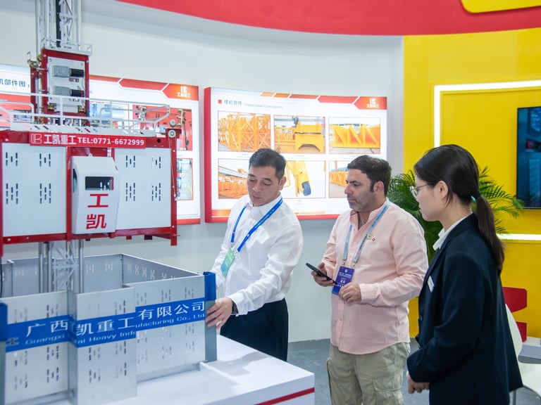 Throughout the exhibition, GKZG's booth attracted a steady stream of visitors, including numerous buyers from ASEAN countries and nations along the Belt and Road routes. Representatives from a Russian construction company inquired in detail about overseas compliance standards and service support systems for tower cranes. Buyers from India and Thailand focused on the safety features and customization options of construction hoists. Malaysian buyers engaged in in-depth discussions regarding application scenarios and cooperation models for the new hydraulic jacking platform.