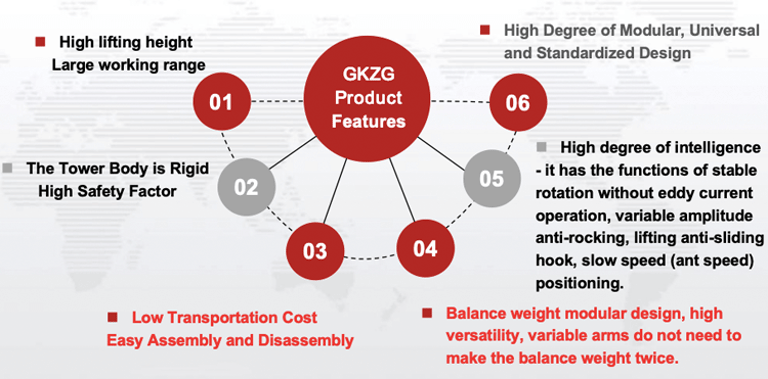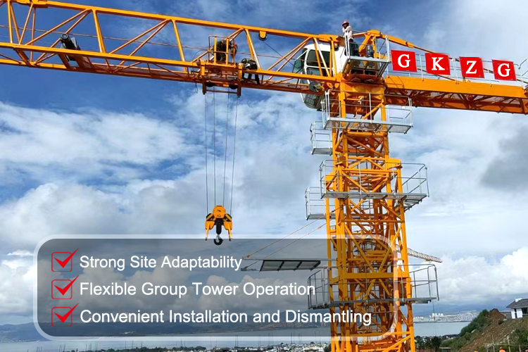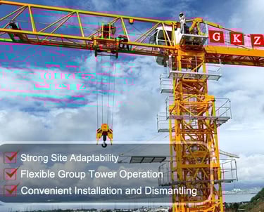 GKZG tower cranes adopt high-strength alloy structural steel and modularized design, with various models to meet the needs of covering high-rise buildings and large-scale infrastructures. Equipped with intelligent anti-collision system, variable frequency induction speed control and remote monitoring platform, the construction precision reaches millimeter level.