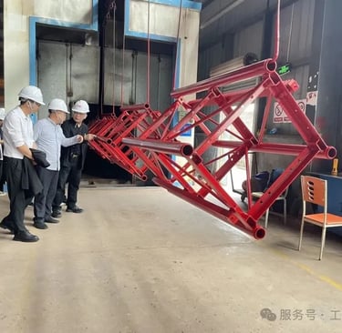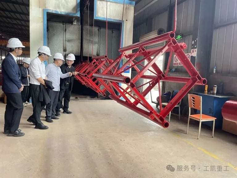 Fan Jiefeng and his delegation toured the corporate culture exhibition hall, the Party member activity room, the intelligent production workshop, and the product display area. They also inspected the full production process of the core production lines for tower cranes and construction hoists, as well as the truss-type hydraulic lifting work platforms. They gained a detailed understanding of the company’s equipment production standards, on-site safety control procedures, and the equipment lifecycle operation and maintenance system. They highly commended Gongkai Heavy Industry for its achievements in technological innovation and R&D, as well as standardized management of work safety.
