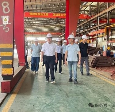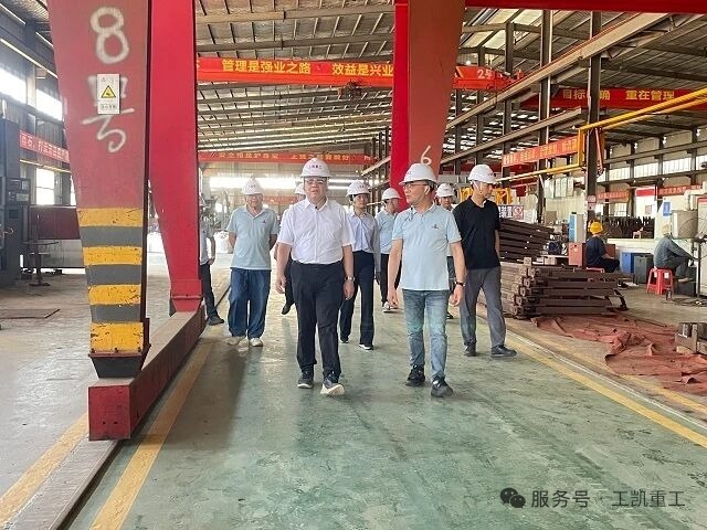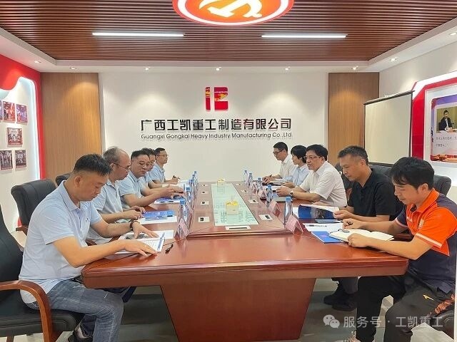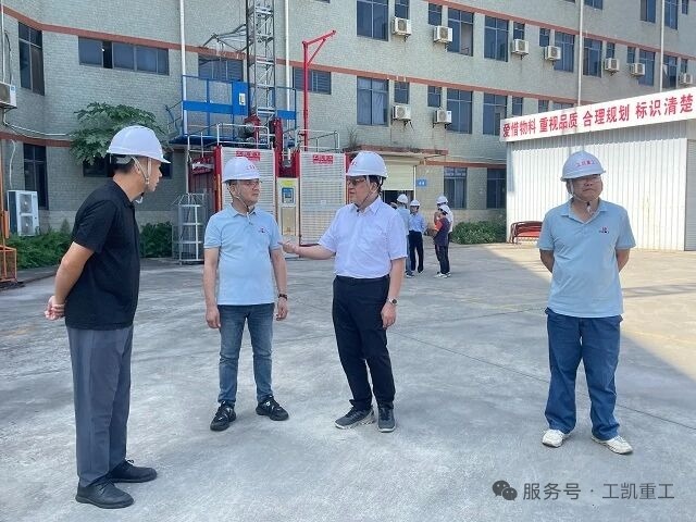 On October 20, Liang Yining, Executive Vice President of the Guangxi Construction Industry Association, and Zeng Wei, Director of the Equipment Station at the Nanning Construction Quality and Safety Management Center, led a delegation to Guangxi Gongkai Heavy Industry Manufacturing Co., Ltd. (referred to as “Gongkai Heavy Industry”) for a research visit and guidance. Pan Xiuzhong, Chairman of the company, accompanied the delegation during the visit.